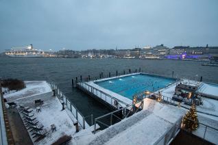 Open air pool where you had to walk across the snow to get to the water! Minus 7 degrees air temperature 25 degrees in the water! I was brave and went in!